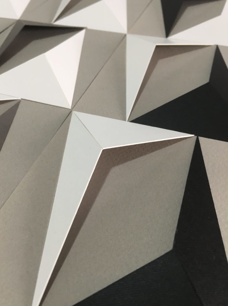 Ao final de cada criação, a luz do ambiente se torna parte da composição: ao incidir sobre os triângulos incompletos, revela efeitos visuais exclusivos e dinâmicos, que conferem movimento e vida à obra — uma fusão elegante entre arte, espaço e emoção.
