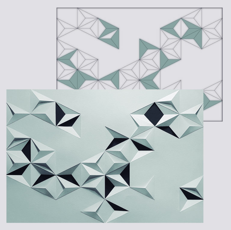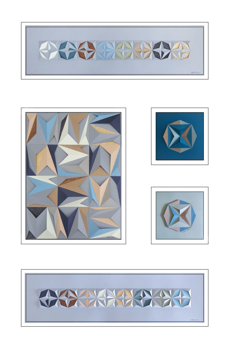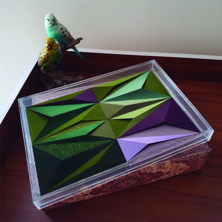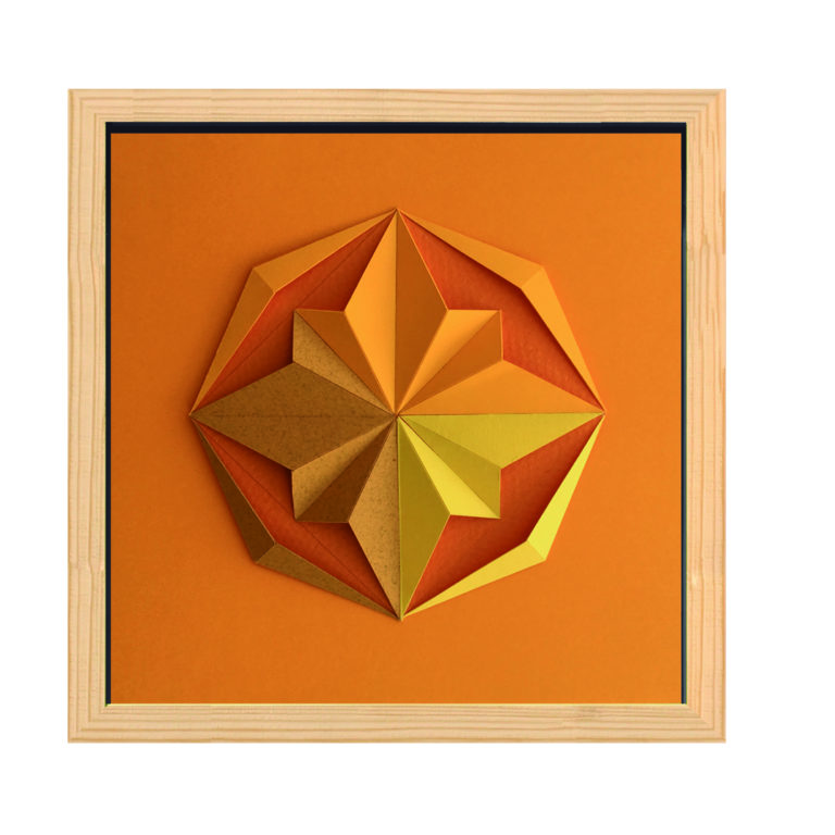 Inspiradas nos mosaicos de origami, nossas obras se distinguem por uma abordagem autoral e contemporânea. Ao contrário da técnica tradicional, que parte exclusivamente de formas quadradas e proíbe cortes, nossas criações transcendem essas convenções, incorporando intervenções delicadas no papel, como cortes e colagem que ampliam as possibilidades estéticas e estruturais da obra.